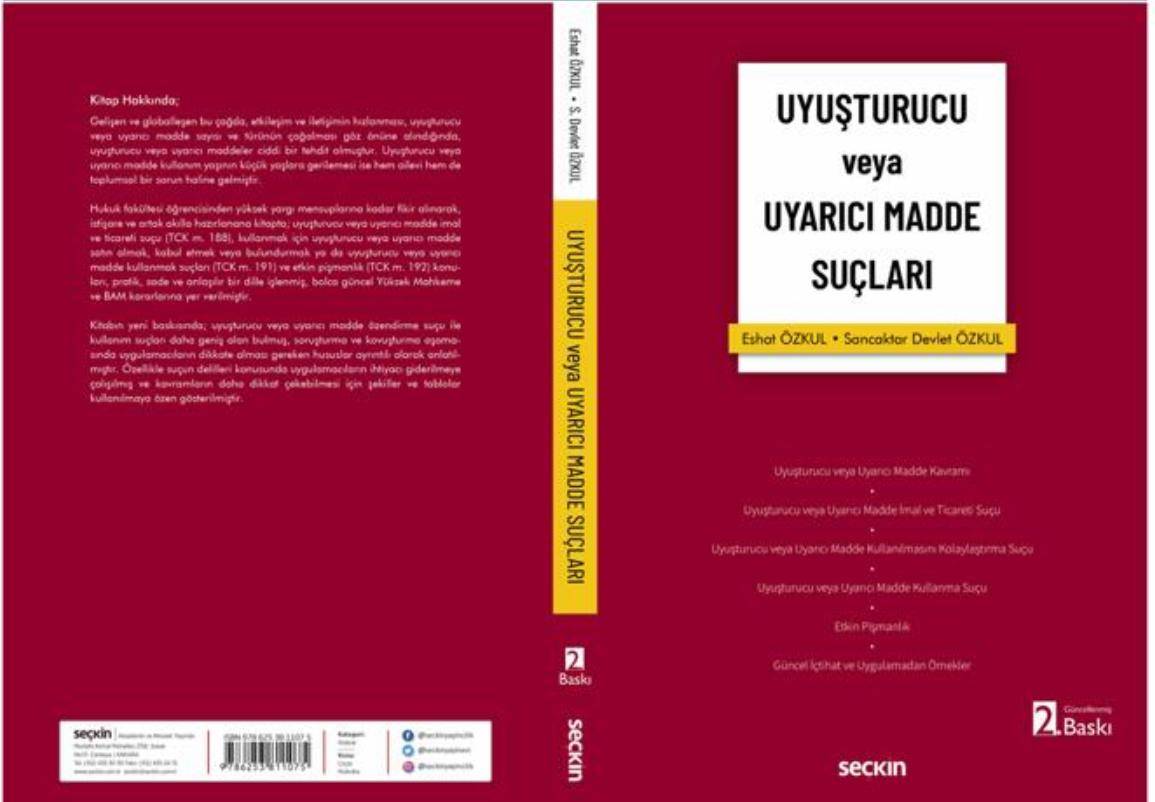 Av. Sancaktar Devlet Özkul ve Hakim Eshat Özkul’un kaleme aldığı ‘Uyuşturucu veya Uyarıcı Madde Suçları’ isimli kitabının ikinci baskısı raflarda yerini aldı.